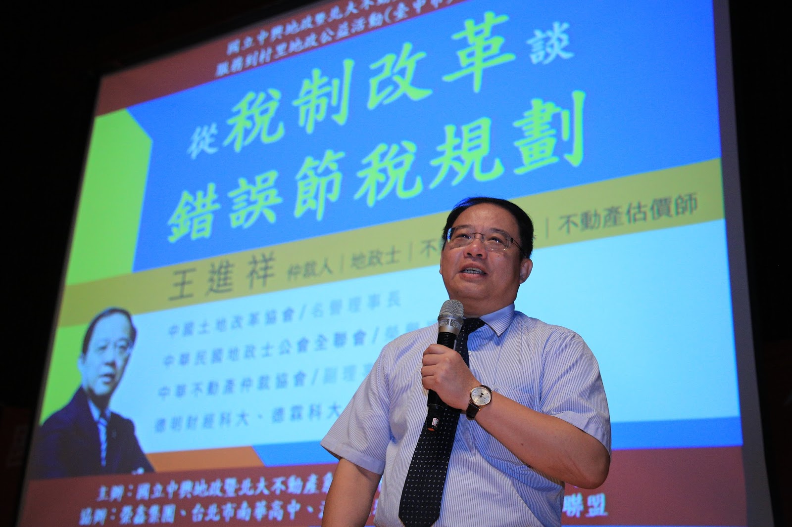 台中市政府與國立中興大學地政暨台北大學不動產聯合系友會共同辦理「服務到村里地政公益活動」,今日於市政大樓4樓集會堂舉辦「房地合一節稅」知識大學堂,在系友會理事長李麗裕引言後,由王副教授講解不動產稅制知識,包括稅制改革、實價登錄、房地合一稅、錯誤節稅等觀念,並透過有獎徵答,讓民眾了解與自身相關的權利與義務。